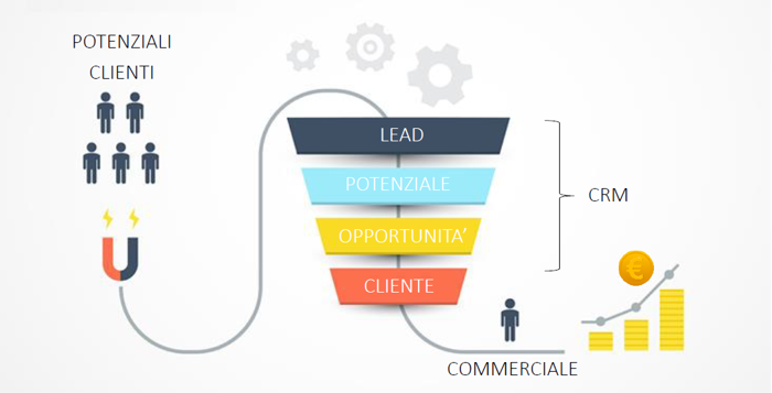 Il CRM (Customer Relationship Management) aziendale ti consente di gestire in modo efficiente le relazioni con i potenziali e/o clienti e disporre sempre delle informazioni necessarie per costruire relazioni di valore basate sulla fiducia.